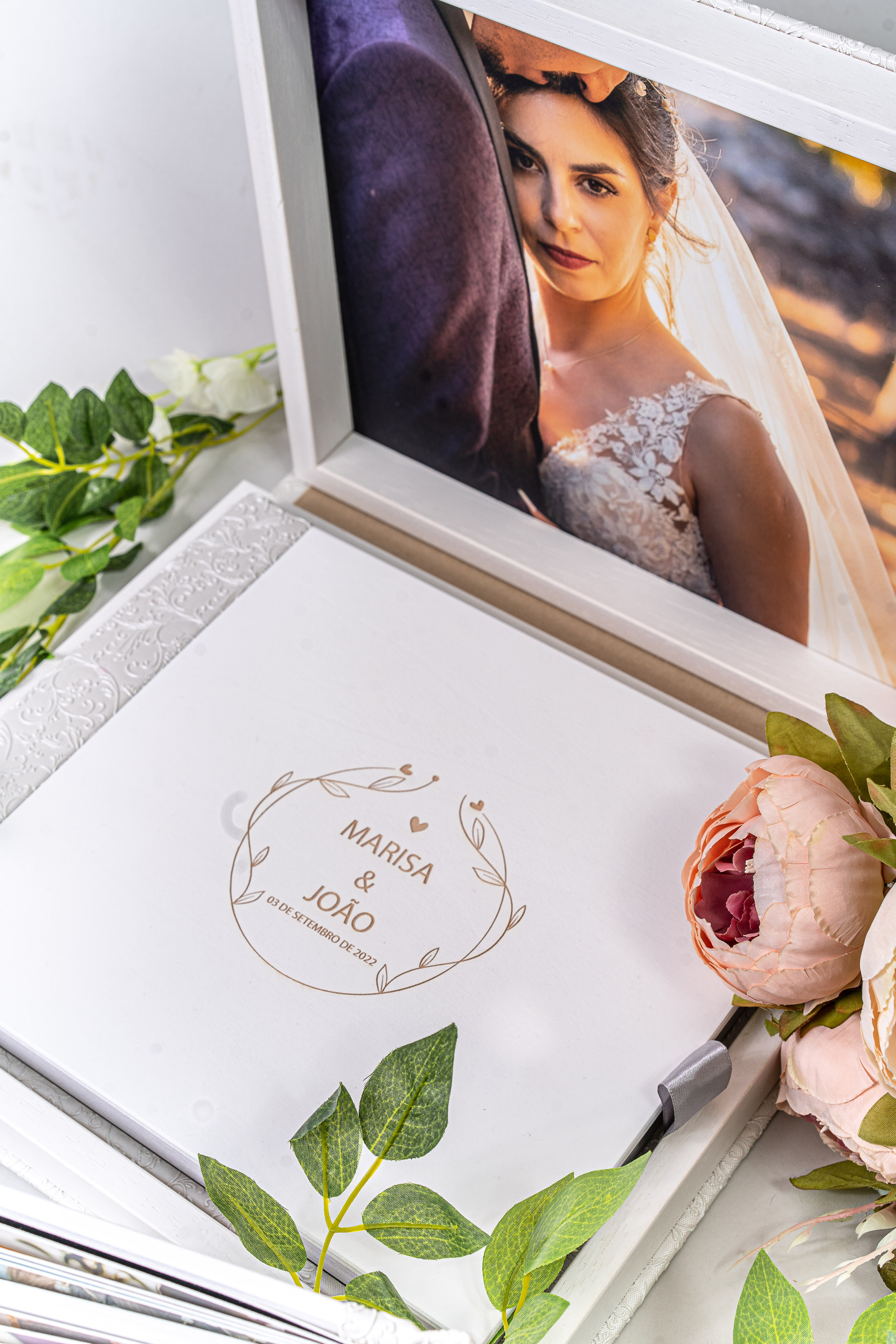 A maioria dos nossos pacotes de casamento já incluem álbum e réplicas desse, a começar com um investimento inferior a 1400€, que inclui cobertura do dia todo, um álbum com caixa personalizada, 2 réplicas e claro, todos os arquivos em formato digital FHD ou 4K.
